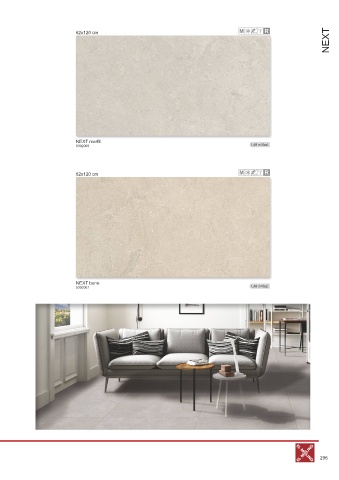 NEXT 3 62x120 cm M R10 PEI NEXT marfil 5302009 1,49 m 2 /bal. 3 62x120 cm M R10 PEI NEXT bone 5302007 1,49 m 2 /bal. Maloobchodní ceny jsou vč. DPH, změna cen vyhrazena. 296