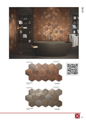 HIVE 2 45,5x90 cm P R9 PEI HIVE cobre 5301928 1,02 m 2 /bal. 2 45,5x90 cm P R9 PEI HIVE bronce 5301927 1,02 m 2 /bal. Maloobchodní ceny jsou vč. DPH, změna cen vyhrazena. 422